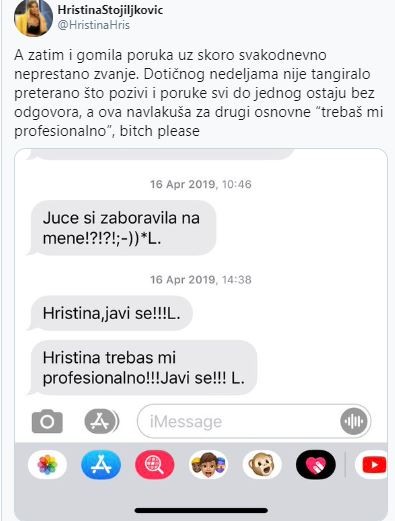 Христина објави преписки каде има неколку пораки со покана да се видат, на што водителката не одговорила. Меѓу тие пораки, наводно е и повикот на Лечиќ, таа да му се јави затоа што му треба „професионално“.