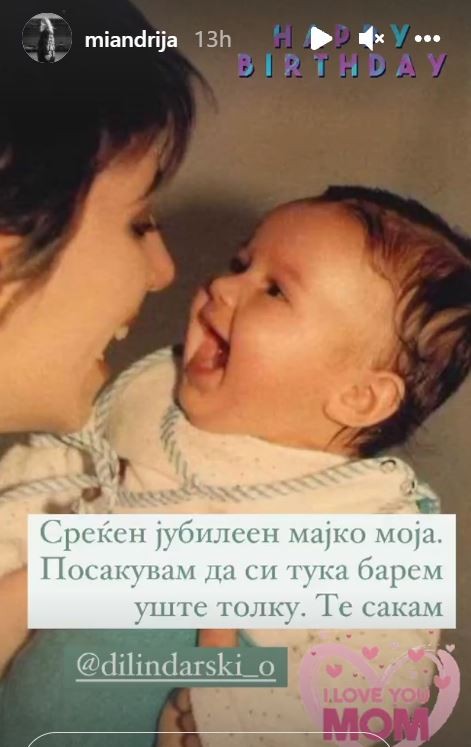 На фотката која е стара три децении Миа и напиша искрена и емотивна порака: „Среќен јубилеен мајко моја. Посакувам да си тука барем уште толку. Те сакам“.