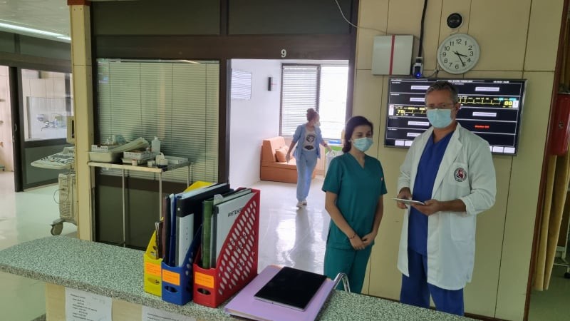 -Повеќе кардиолози од клиниката постојано работеа во неколку други КОВИД центри. За време на пролетниот бран, се појави потреба и за отворање на КОВИД центар на клиниката. Иако според бројот на интервенции и хоспитализации сме најголем кардиолошки центар, и еден од поголемите на Балканот, вториот спрат од болницата беше физички изолиран и организран во “црвена” и “зелена” зона. Веднаш започнавме со сите методи на лекување пред се, од кислородна терапија со висок проток (high-flow O2), неивазивна вентилација па се до интубација и механичката вентилација. Успеавме неколку критично-болни да ги спасиме после неколку дена на механичка вентилација односно на респиратор. Во нашиот центар, за прв пат, применивме и нов оперативен програм кој ни овозможи да бидеме целосно “paperless” оддел. Целата документација, вклучително тераписки листи, следење на параметри, забелешки за состојбата на болните и др., одеше електронски со користење на “таблети”. За таа цел пациентите имаа алки со посебен баркод, за единствена идентификација. На тој начин немаше пренос на документи, хартии од црвена-заразна во зелена-сигурна зона, и немаше ризик за пренос на инфекции.