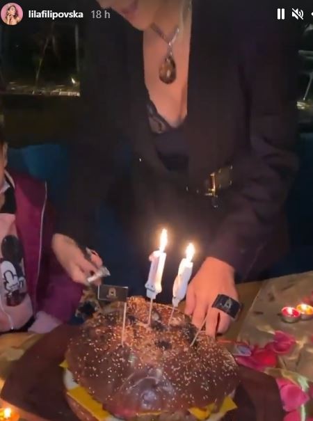 Изненадувањата за Лила започнаа од вчера, кога доби роденденска торта во форма на бургер со свеќички со бројот 18.