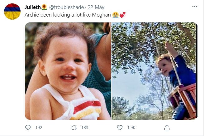 Корисниците на Интернет сè почесто коментираат дека малиот Арчи е копија на мајка му, Меган Маркл.