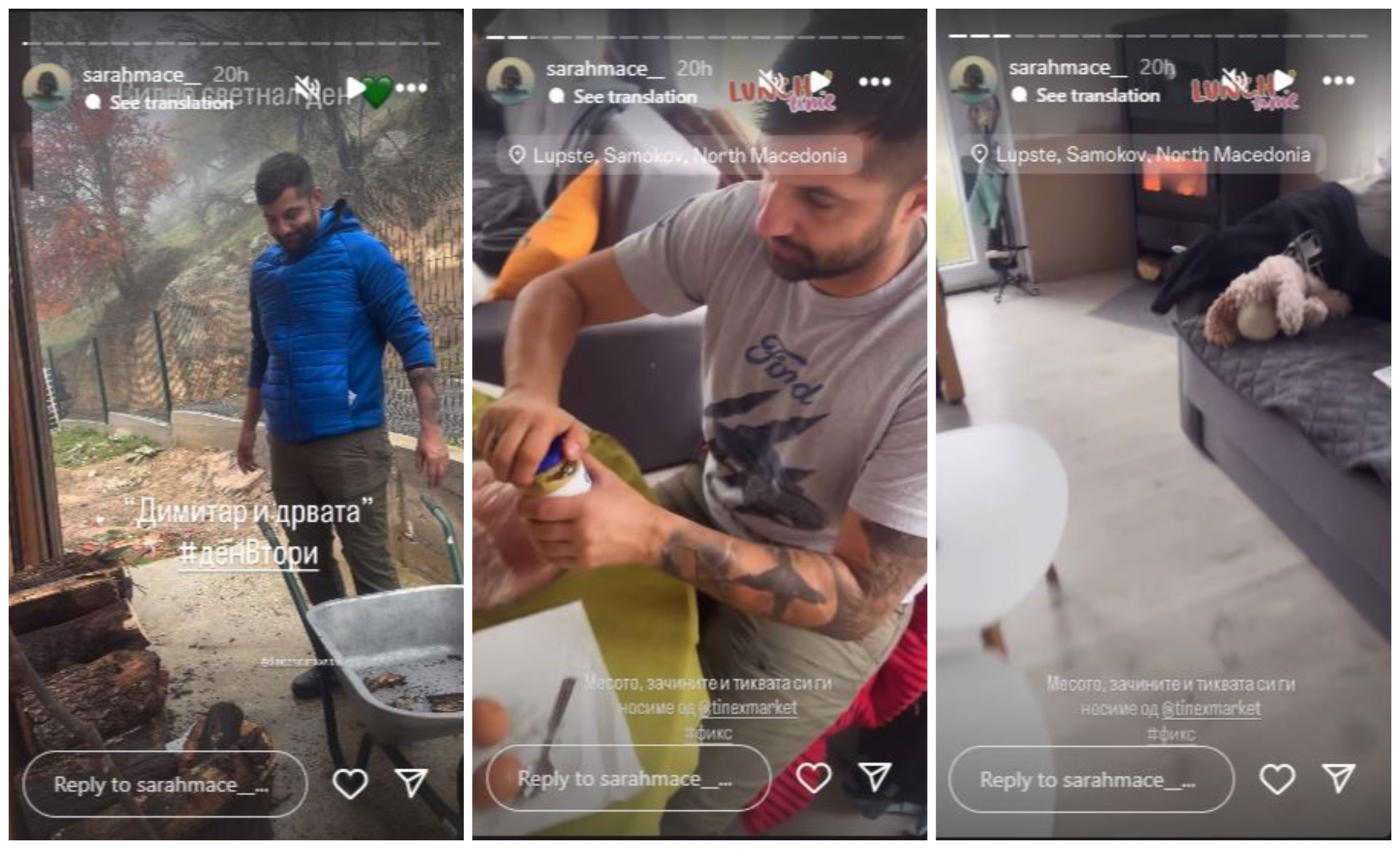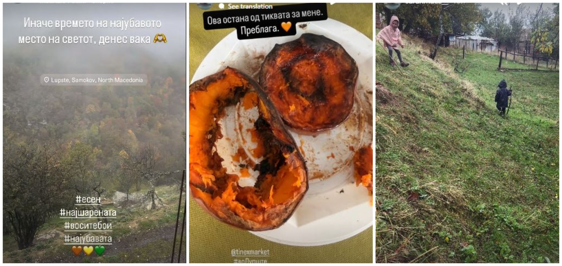 Овој пат, Сара и Димитар заедно со своите две деца, Илина и Кирил, го искористија есенскиот викенд за престој во нивното омилено прибежиште — селото Лупше, близу Самоков. Малото и тивко село, опкружено со густи шуми и чист воздух, е нивна редовна дестинација во сите годишни времиња, но очигледно судејќи според фотографиите есента таму има посебна магија.