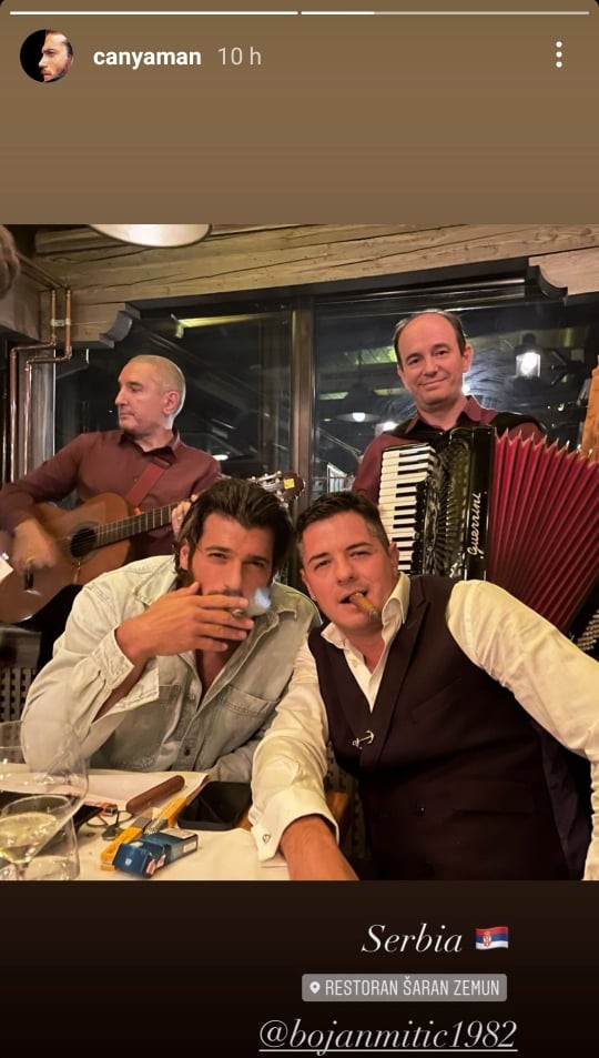 Џан, исто така сподели и фотографија на која ужива во кафеана, каде мизичарите му свират на увце.