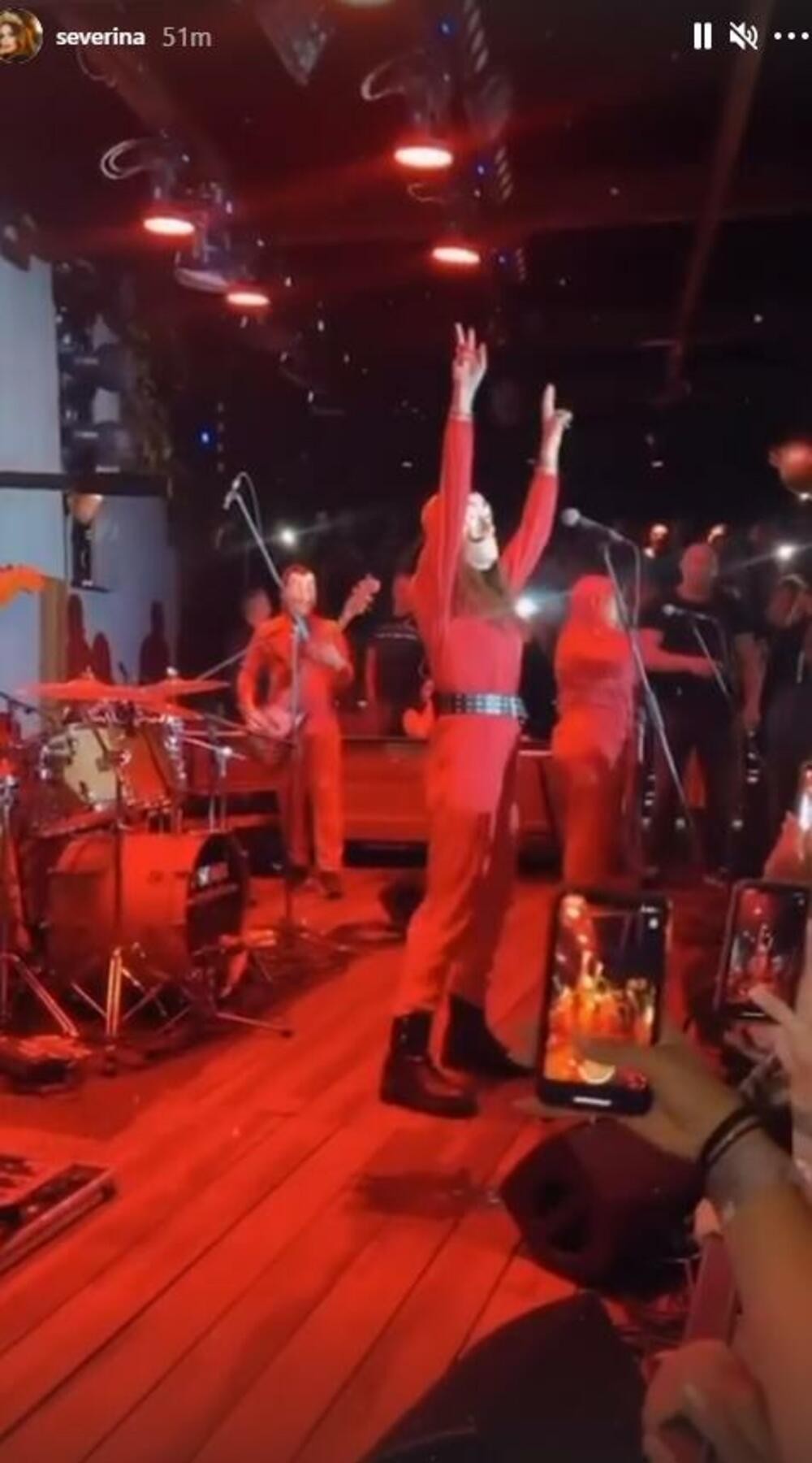Пејачката Северина на настапот дојде со маска на лицето и црвен комбинезон и така го започна.