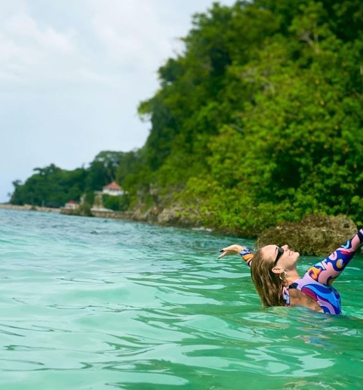 На црно-белата фотографија, пејачката позира без никаква шминка. Таа објави и фотографија на која позира со раширени раце во морето, а на последната танцува со пуштена, брановидна коса.