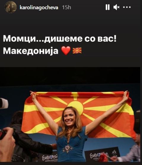 Каролина Гочева објави фотографија од настапот на Евровизија со македонското знаме и им упати зборови за поддршка на фудбалерите.