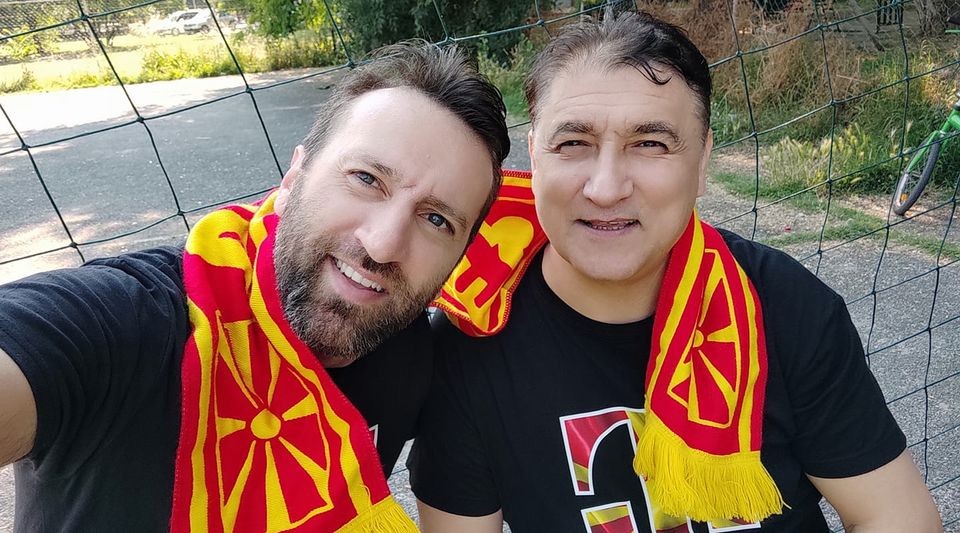 Актерот Сашко Коцев во друштво на златната копачка, легендарниот фудбалер Дарко Панчев навиваа за Македонија.