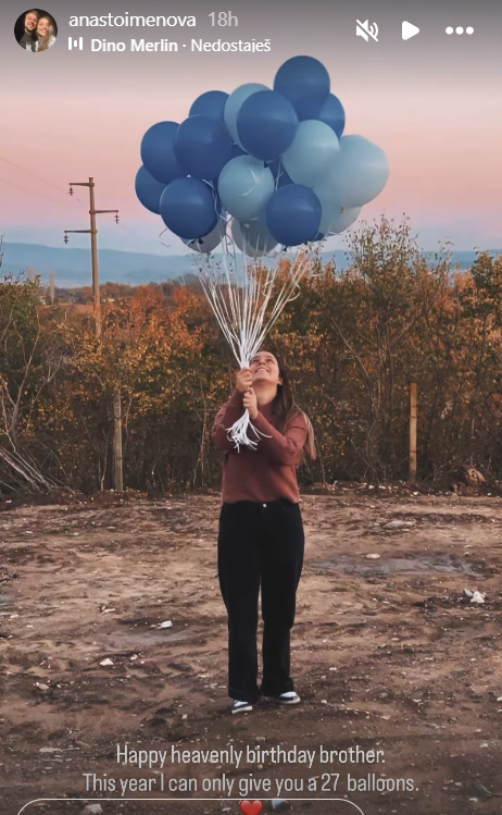 „Среќен небесен роденден брат. Оваа година можам да ти подарам само 27 балони“, напиша таа на своето Инстаграм Стори.