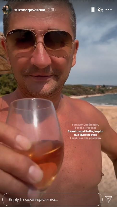 Имено, Гавазова најпрво објави неколку видеа со сопругот на плажа, како заедно пијат вино и си наздравуваат.