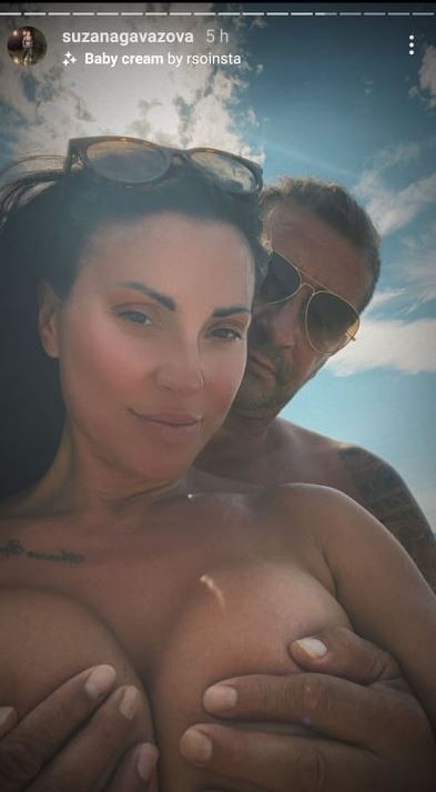 Сузана Гавазова направи бура на Инстаграм, а има и зошто: Сопругот ѝ ги крие градите додека таа позира топлес (ФОТО)