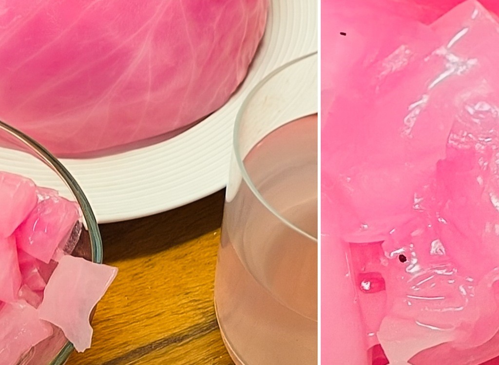 За да се добие убава розева боја на расолницата, најчесто се користи природен пигмент од црвена зелка.