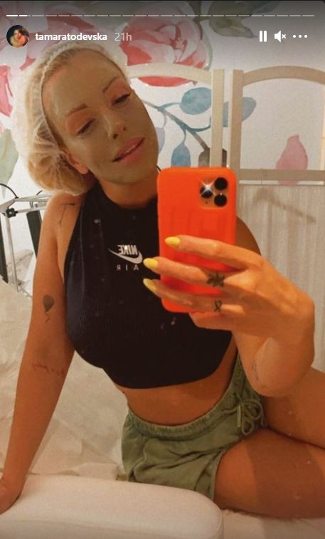 Тамара е жена која се негува, па на Инстаграм стори постави фотографија од козметичка маска на нејзиото лице во зелена боја... Се секавате на филмовите кога некоја актерка ќе се појави во слична таква маска и ги плаши сите... Не, Тамара не е до толку страшна, ама секако фотката е интересна, а Тодевска како да ги живее најубавите години- преубава е.