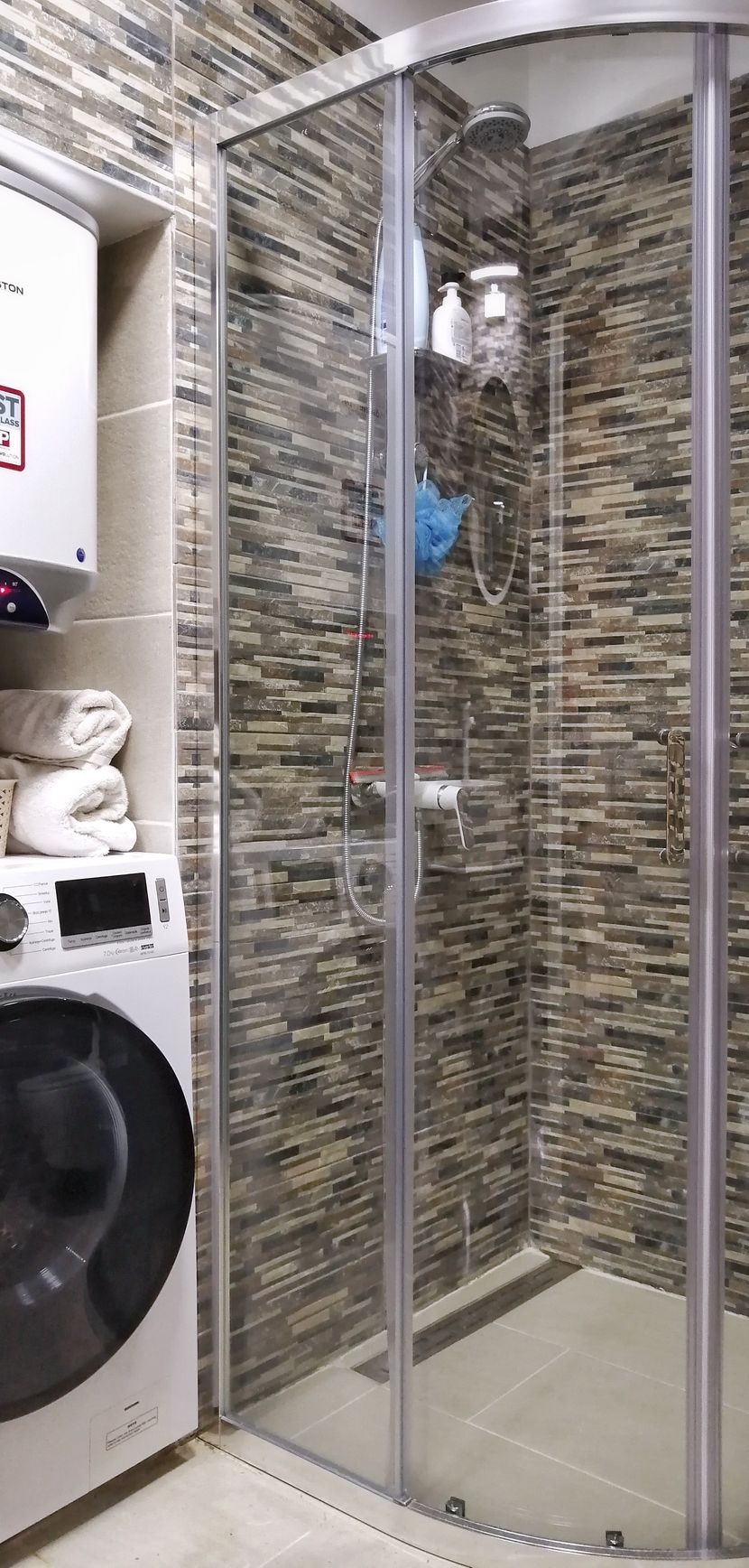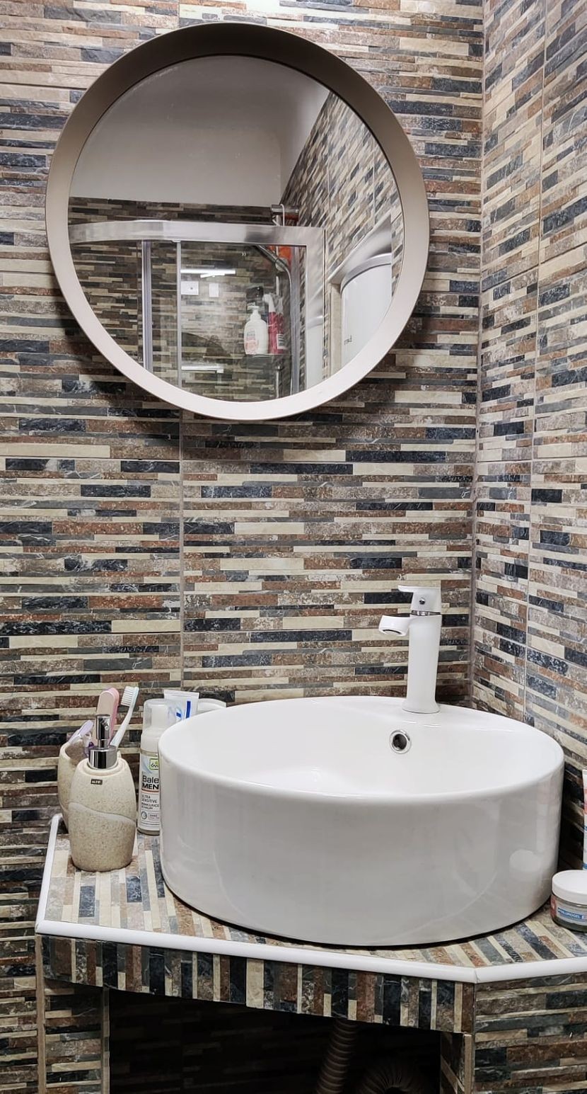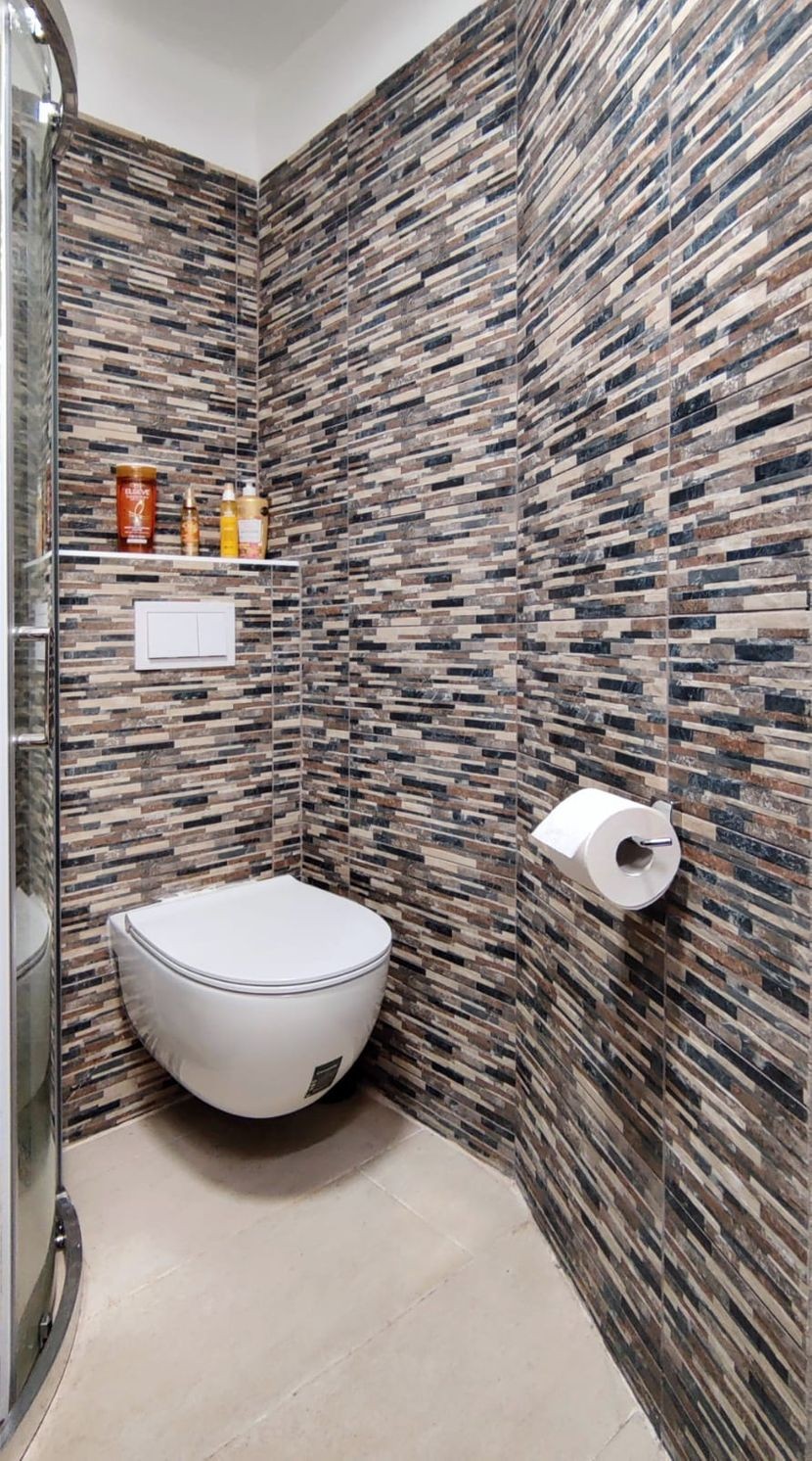 - Ние го направивме проектот, списокот на трошоци сами како и комплетниот дизајн на ентериерот. Физичкиот дел, кој вклучува електрични инсталации, водовод и керамички работи, поставување на специјална звучна изолација, како и конструкција на ѕидот на бањата, го направија мајстори - објасни таа.