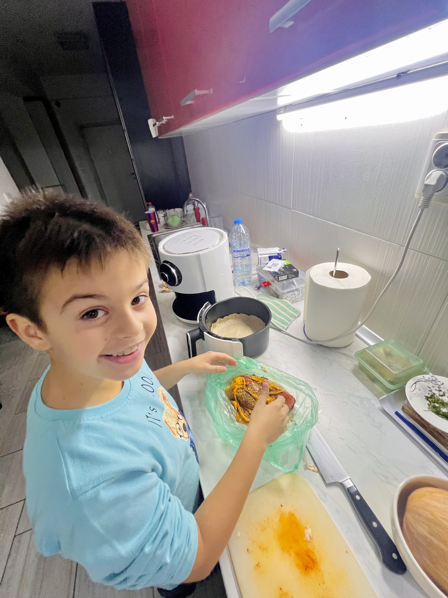 Кога ќе се врати, автоматски ја презема улогата на главен готвач дома. „Леонид понекогаш готви со мене, тоа ни се најубавите моменти.“
