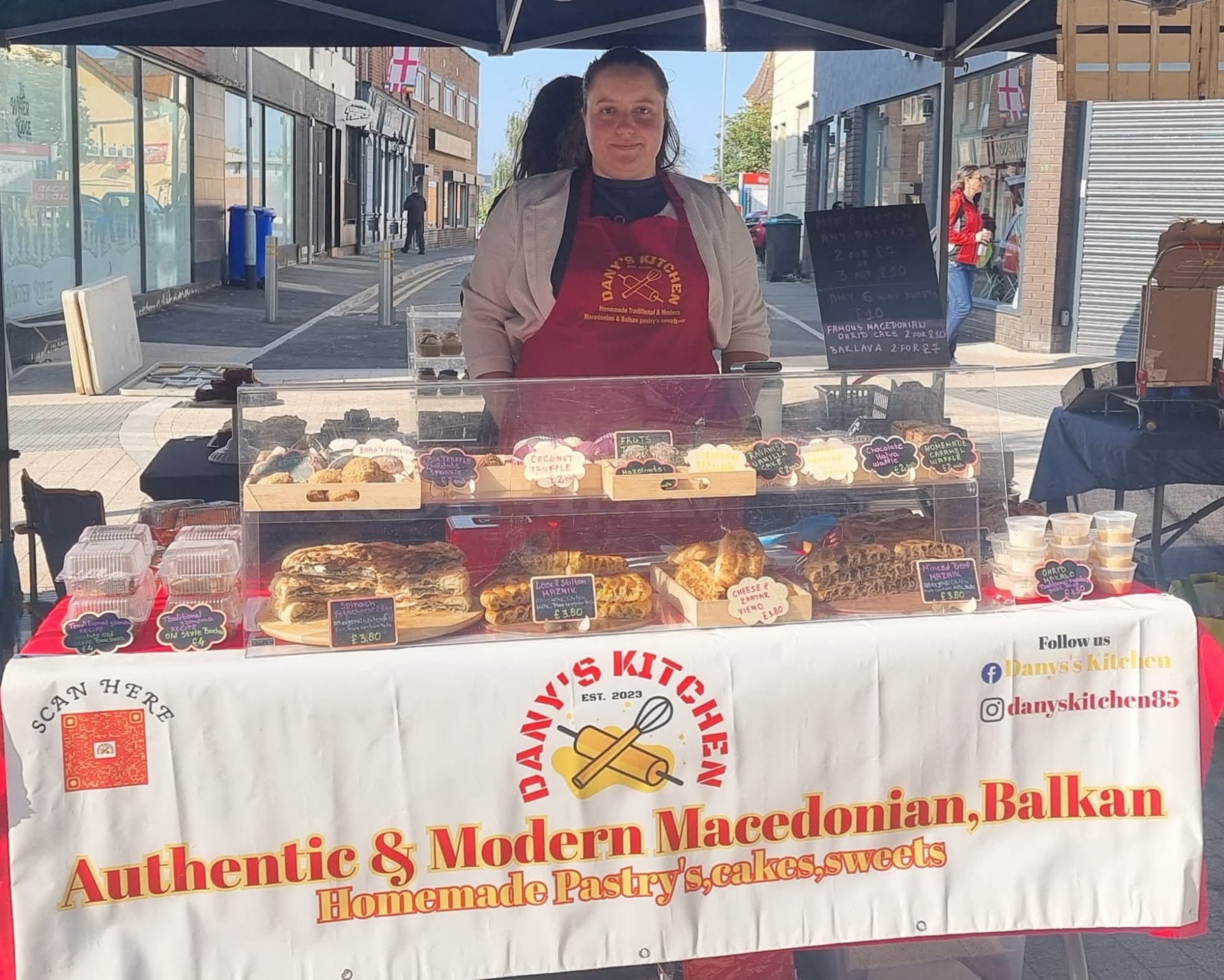 - Сопругот од мал имал желба да има свој ресторан или пекара. Додека пак јас уште од малечка се плеткав низ кујната со баба ми и мајка ми и учев да готвам. Моментот кога си рековме „Ајде ќе пробаме нема што да изгубиме“ беше кога останав без работа. Вљубени сме во традиционалната македонска храна. Секојдневно готвевме, а фотографиите од нашите јадења ги споделувавме со нашите пријатели кои се воодушевени од македонските специјалитети. Потајно имав желба да имам своја пекара. Кога останав без работа, сопругот ме охрабри и во октомври 2023 година започнав сопствен бизнис Dany's Kitchen или во превод на македонски „Кујната на Дани“. Името на пекарата е по заслуга на сопругот, бидејќи тој сакаше да биде поврзано со мене. На почеток ја нудевме нашата храна во селото каде што живееме и околината, а потоа и во маркетите. По еднагодина пробно отворивме и дуќан на шест месеци. Моментално сконцентрирани сме на маркети во околината и вршиме кетеринг услуги за секоја пригода. На прагот сме за влез во Британски High End супермаркет.