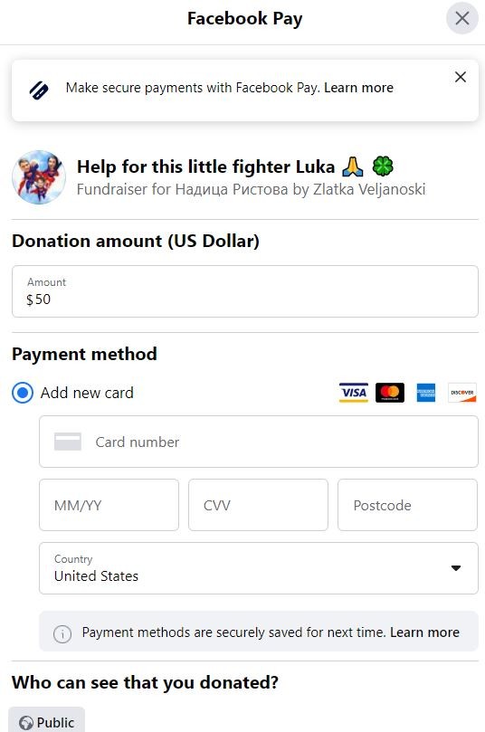 Донацијата можете да ја направите преку Фејсбук страницата за донирање на следниов линк Help for this little fighter Luka .