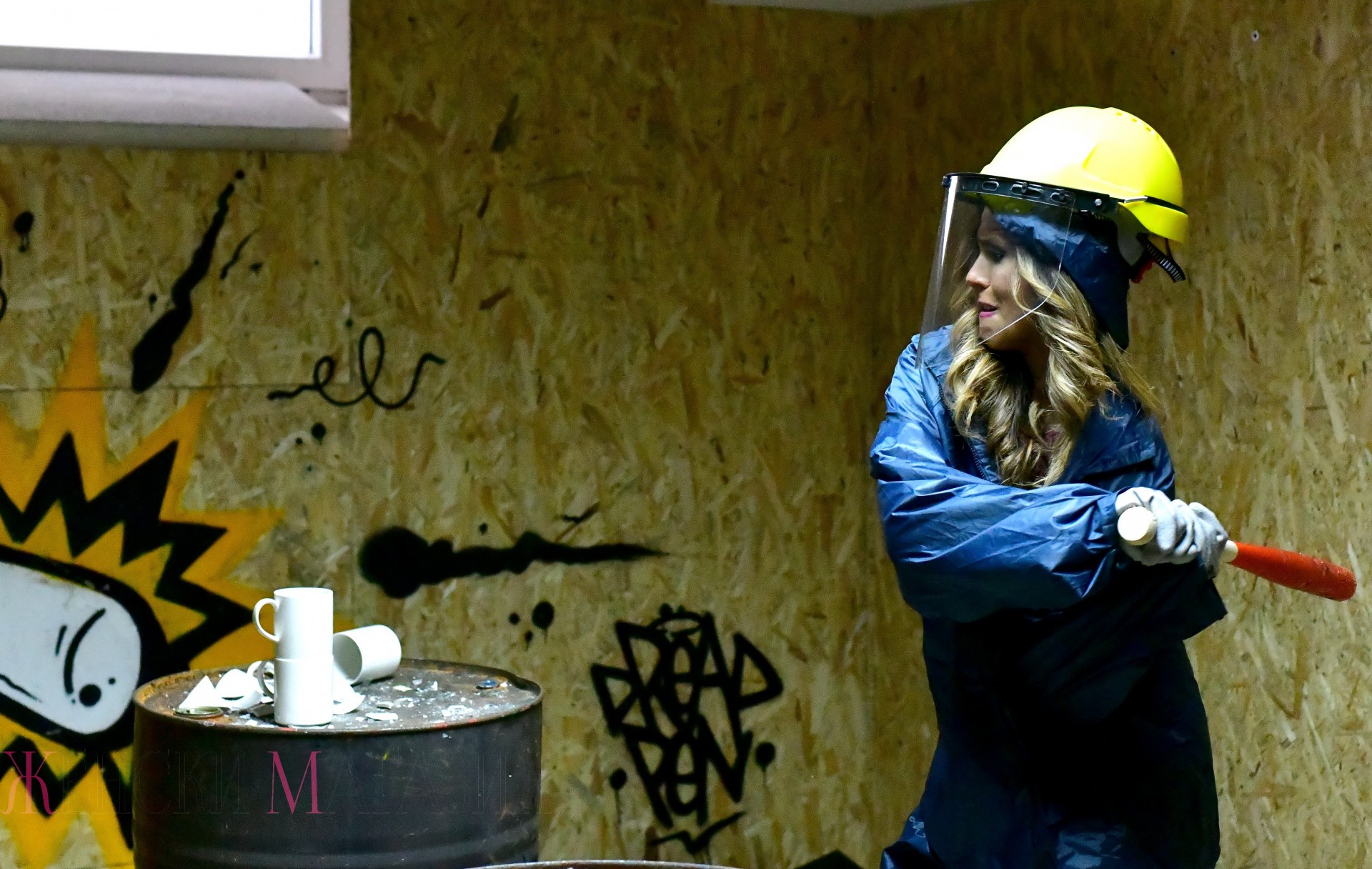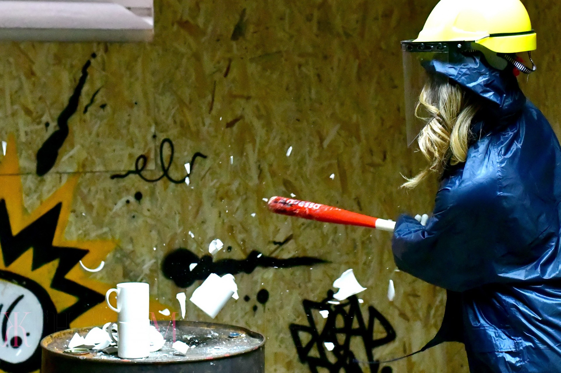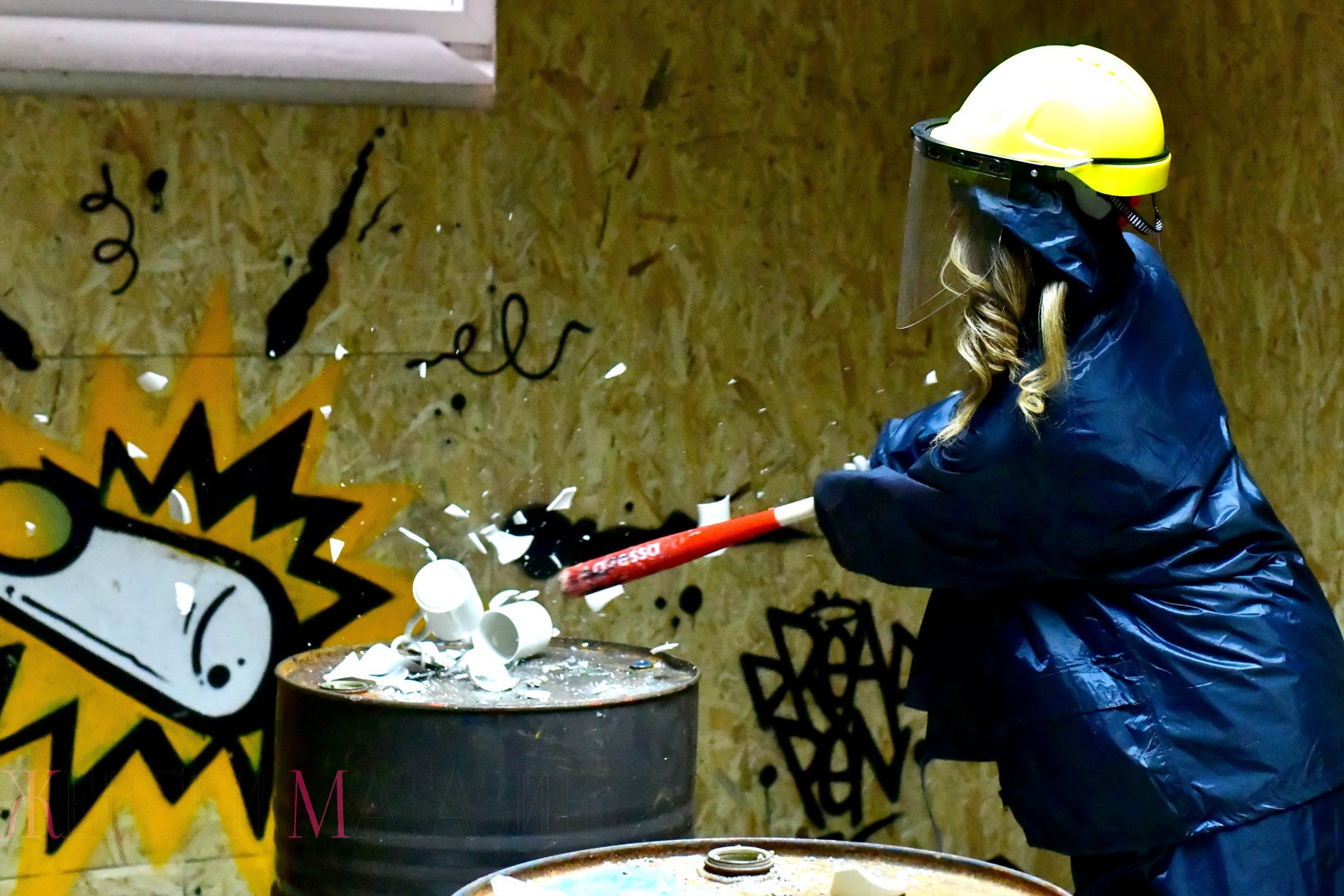 Постои уште еден начин кој е хит во светот, и се има покажано како доста ефикасен, а сега го има и во Скопје. Облекуваш заштитна опрема, кршиш стакло, керамика и други предмети со чекан или со палка, и излегуваш од анти-стрес собата како нов. Токму ова го нуди местото Smash It Up, во центарот на Скопје на улицата Орце Николов. „Дојдете, скршете, ослободете се од стресот“ е девизата на ова уникатно место.