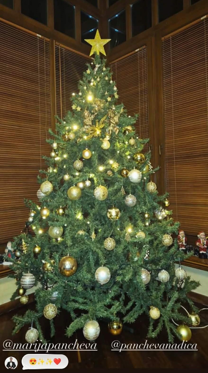 Елката на Маја Гроздановска Панчевa годинава зрачи со топлина, елеганција и префинет празничен вкус, претворајќи го домот во вистинска новогодишна оаза. Со доминантна златна палета и суптилно распоредени светилки, елката изгледа како сцена од празнична бајка, каде што секој детаљ е внимателно одбран и складно вклопен.